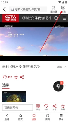 3、在电影播放界面,点击【TV电视】选项,即可将影片投屏到电视上。