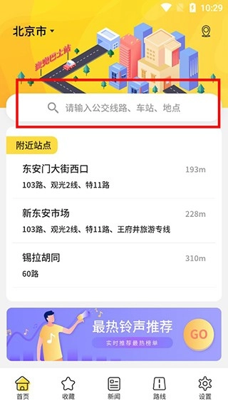 2、点击城市后,在搜索框中输入公交路线、车站、地点等信息进行查询。