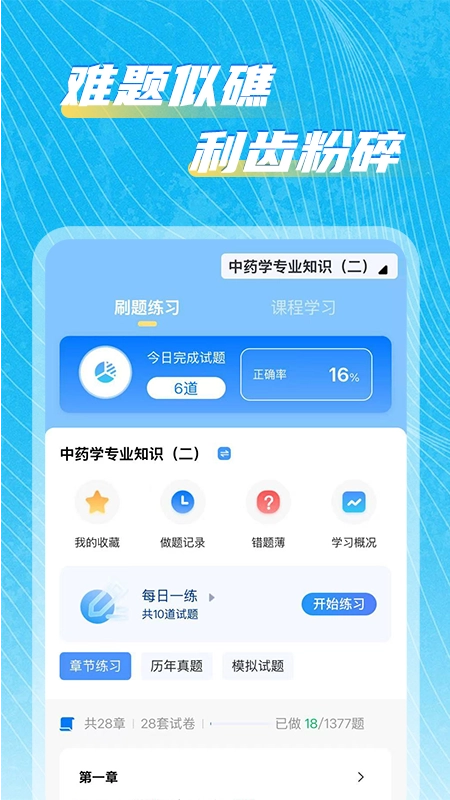 2. 于App首页,依据备考需求挑选相应的专业与科目,像一级建造师、中药学之类。