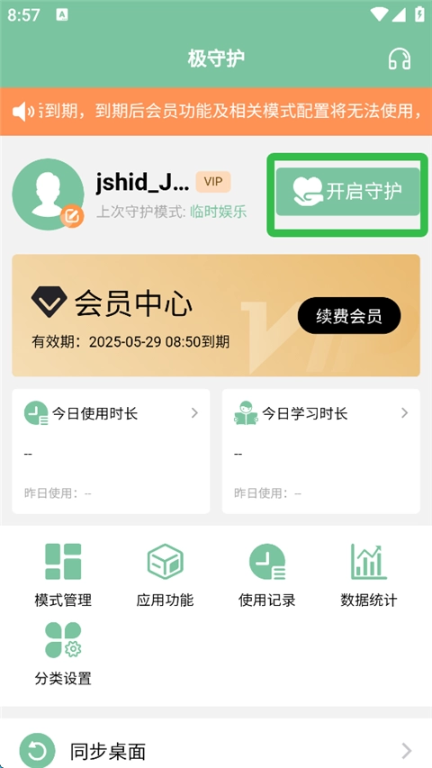 1、进入软件内登录后,点击开启守护