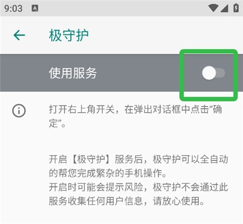 5、在应用处找到极守护