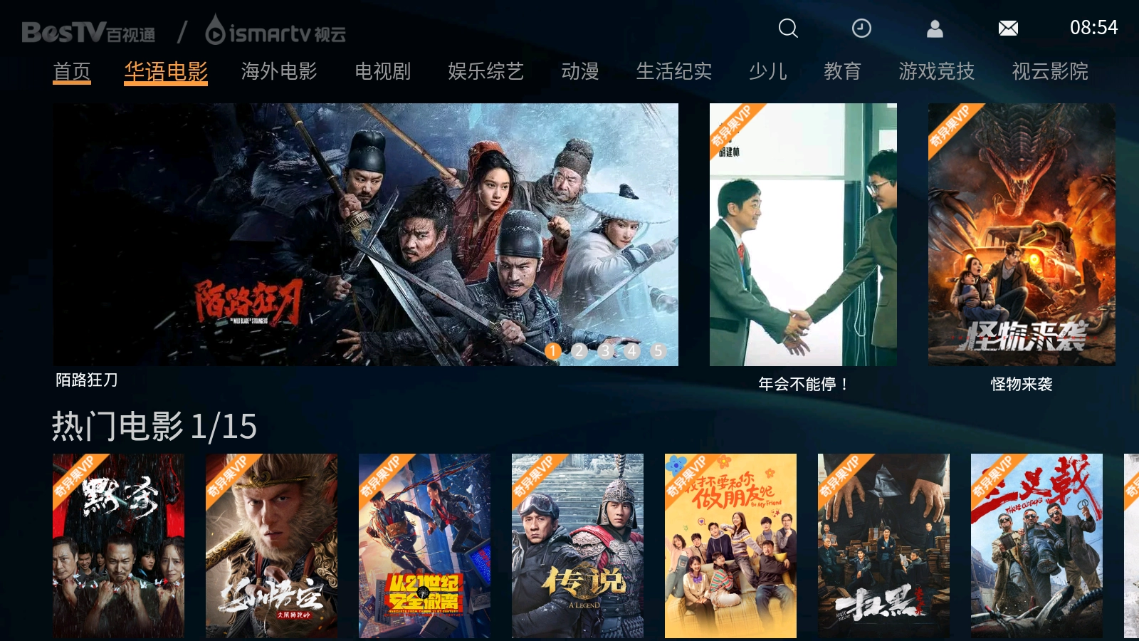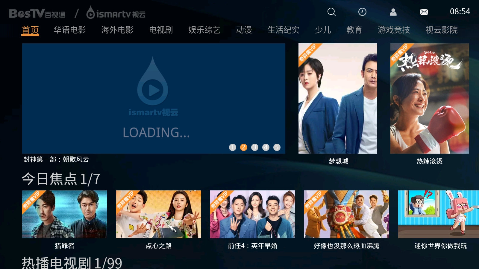 1. 开启视云影院App,在首页顶端可以看到分类标签,点击该标签就能进入相应频道。