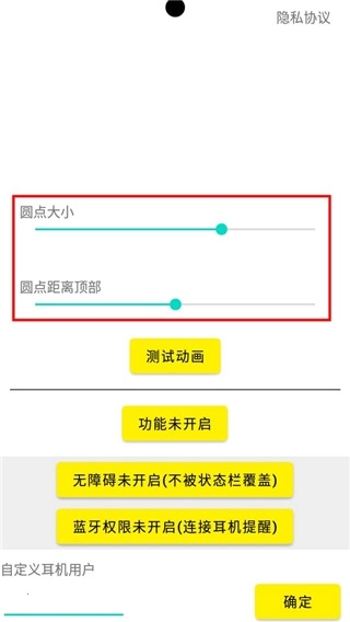 2、然后选择“圆点大小、以及圆点距离顶部”。