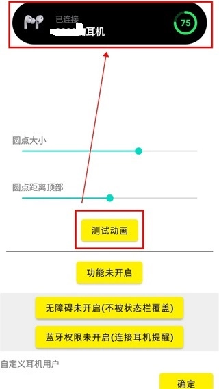 3、轻点“测试动画”,于手机上方便能查看自己所设置动画的尺寸大小。