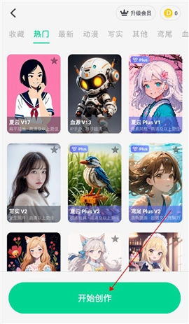 3、在进入绘画页面之前,用户可先挑选一个绘画形象,随后AI将依据该形象展开绘画,挑选完毕后点击下方的“开始创作”按钮就行。