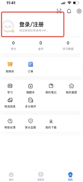 一、下载并安装乐学高考,打开,点击“我的”;
