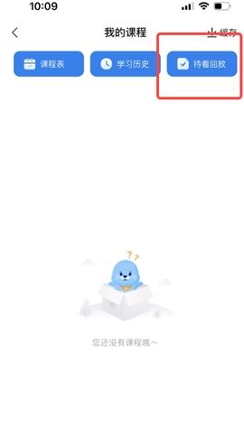 三、进入学习页面后,点击如图所示位置的“待看回放”功能,即可观看回放了。
