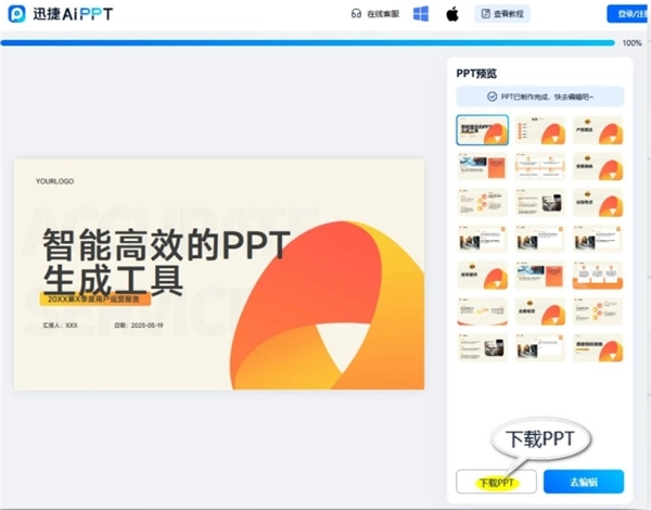 在生成界面预览PPT效果,没有问题的话点击下载就好啦!