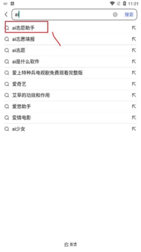 2、在搜索结果页面点击【AI志愿助手】进入AI志愿助手页面;