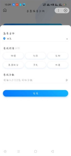 3、进入AI志愿助手页面后,会弹出一个页面,在此页面需填写高考生的真实信息,包括高考所在省份、除语数外之外所选3科考试的科目,以及我们预估的考试分数,填写完毕后点击【完成】。