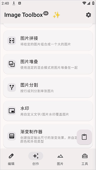 Image Toolbox中文版APP是一款完全免费且开源的手机图片处理软件,它具备中文语言显示功能。此APP将图片编辑、创作以及实用工具等多项功能整合在一起,目标是成为手机端的全能PS工具。