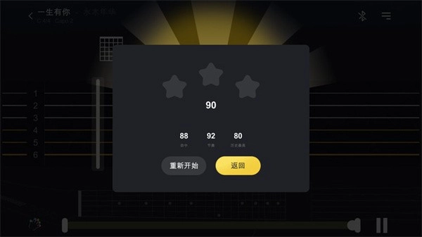3、游戏模式:以游戏的方式弹奏心仪的歌曲,即便毫无吉他演奏基础,也能轻松实现弹唱喜爱歌曲的愿望。