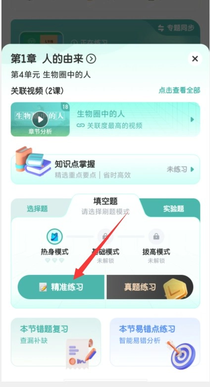 第二步:在练习模式里,选择进行选择题练习还是填空练习。