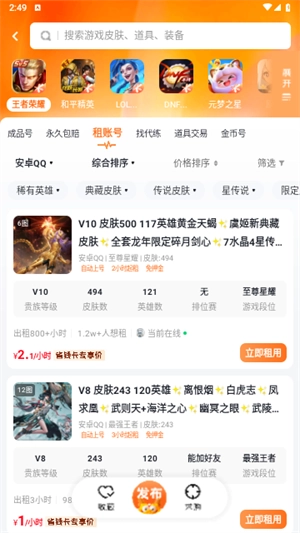 3、一键租赁:具备一键租赁功能,方便用户快速挑选并租用自己心仪的账号。