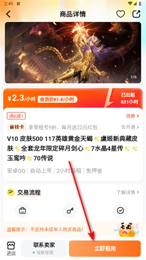 5、点击“立即租用”即可。