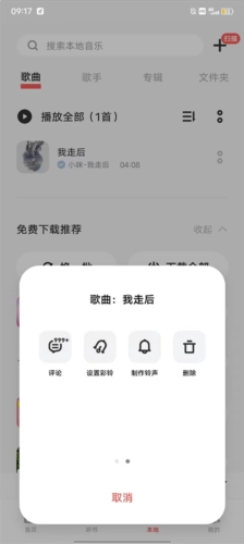 2. 在本地音乐下载界面,点击这首歌右侧的两个点。