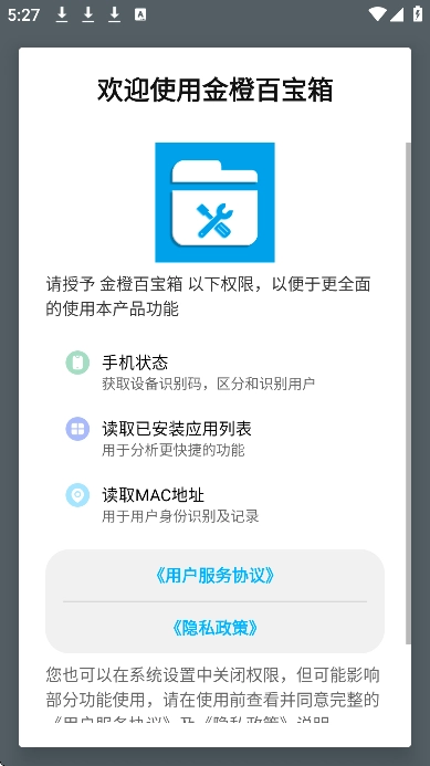 1. 于本站下载并安装金橙百宝箱app,随后开启该软件。