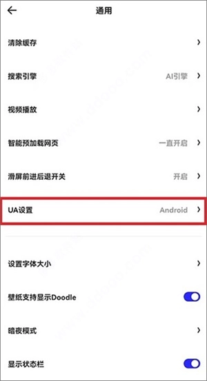 4、点击ua设置选项。