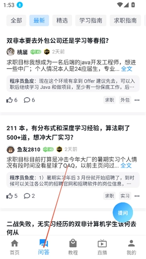 3、在问答板块,用户只需点击选择【提问】就行。