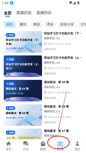 5、当你进入直播后,能够浏览到最新的直播内容,还能与博主展开互动,一同学习并分享学习经验。