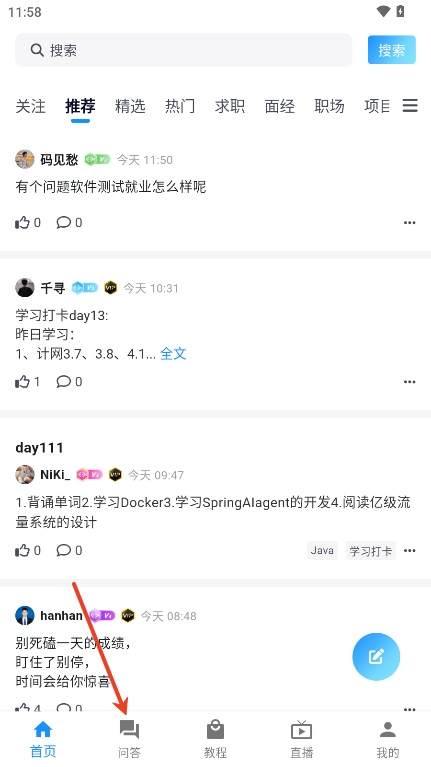 2、点击底部的【问答】