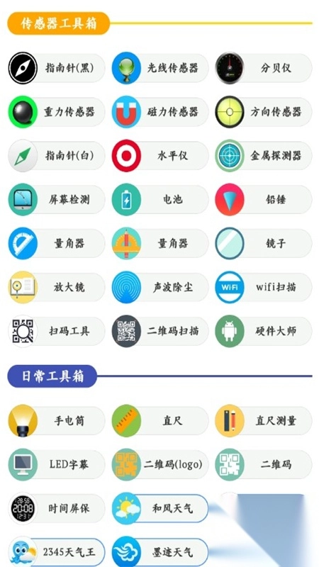 一个工具箱app,堪称备受青睐的手机工具箱类软件。在这款软件中,为用户精心准备了众多日常实用的小工具,而且全部免费。所有工具无需下载,在线就能使用,像指南针、手电筒、计算器、扫描仪、翻译器等各类工具应有尽有。要是你想用什么工具,直接搜索就行。不仅如此,该软件内存极小,使用起来极为便捷。有需求的小伙伴,赶紧来下载吧!