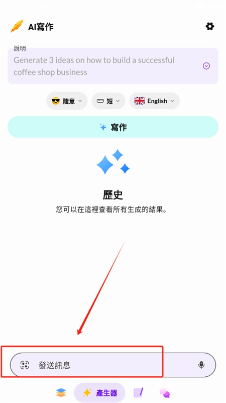3、选择功能然后进入页面,输入关键词发送即可快速生成