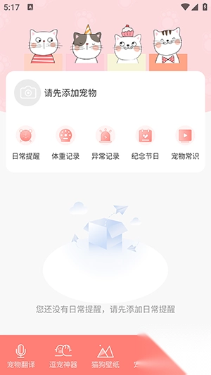 猫宝翻译器app官方版本,是一款功能极为强大且操作便捷的手机宠物翻译软件。该软件借助智能翻译以及叫声模拟技术,达成了人与猫咪之间的双向交流。借助这款软件,用户能够更深入地知晓猫咪的情绪与需求,从而为它们给予更为贴心的照料。与此同时,软件还配备了内容丰富的猫咪知识百科全书,以及提醒事项功能,助力用户以更科学的方式养猫。