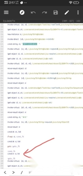 3. 点击搜索到的*下方这个,向下翻至1285行,将const/4v1.0x0修改为const/4v1.0x1