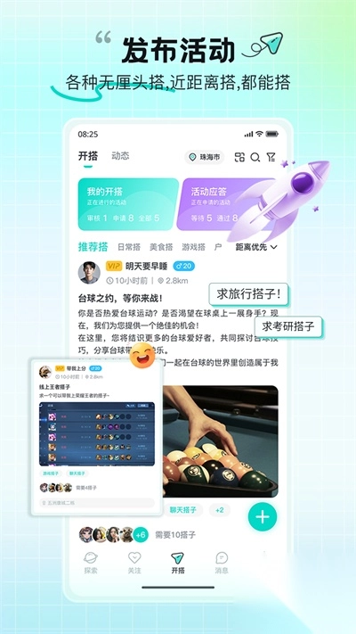 3、 用户能够发起线上线下活动,也能参与其中,借此增加社交互动,拓展人际关系。