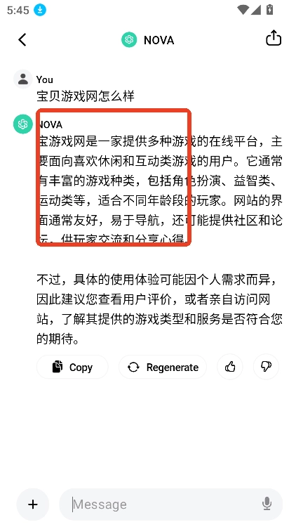 Nova AI中文官方最新版,是一款集最新AI技术于一身的软件。它能够精准领会用户输入的自然语言指令,实现对话、答疑、文本生成等操作。借助深度学习算法,Nova AI会持续优化与完善自身功能,从而契合不同用户的需求及多样场景。用户可依据自身实际需求,对Nova AI展开个性化设置。有需要的小伙伴,赶快下载体验吧!