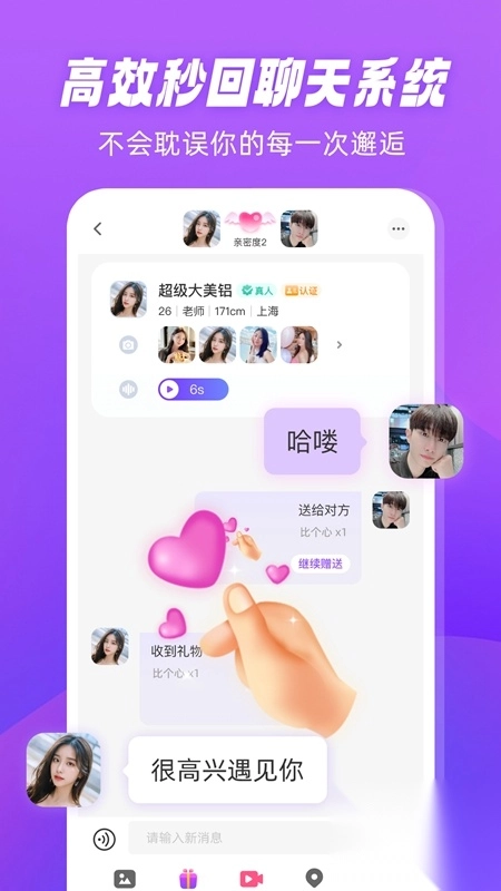 2、超安全好用的脱单工具,支持文字以及语音等交流模式,切换自如;