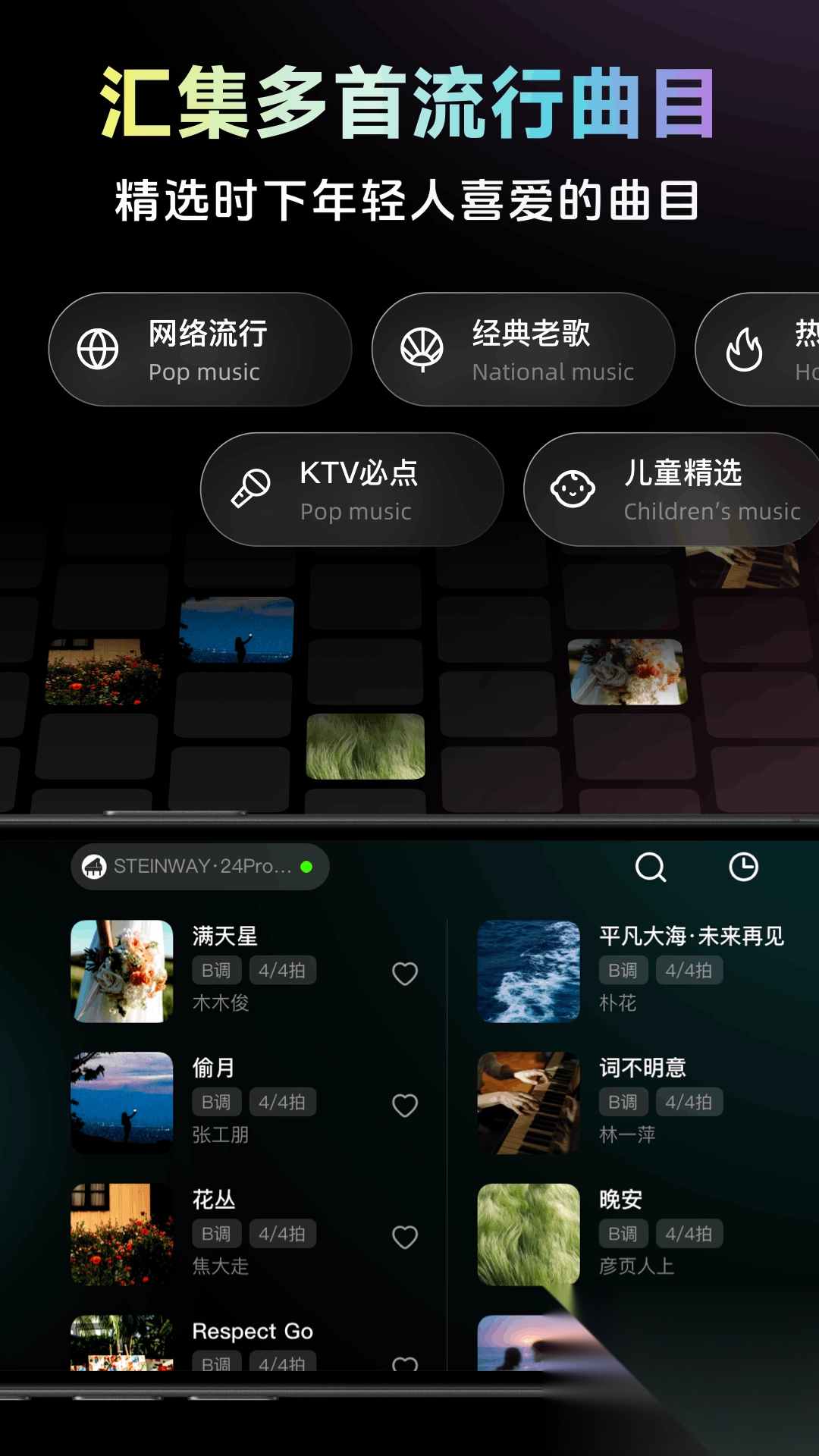 曲库规模庞大且实时更新,智能曲谱数量超万首,无论是KTV热门金曲,还是国外经典曲目,皆一应俱全。