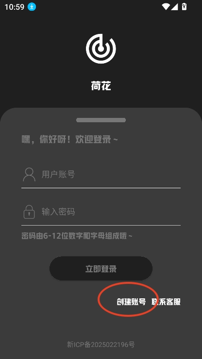 有账号密码,输入账号密码登录,没有账号,点击创建账号