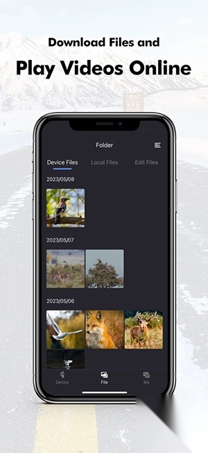 2. 能够在线查看设备的视频文件,还能将设备文件下载至手机,并分享到其他平台。