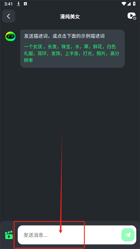 2. 进入首页,在对话框页面输入您想要了解的问题并发送,软件将迅速为您生成回复。