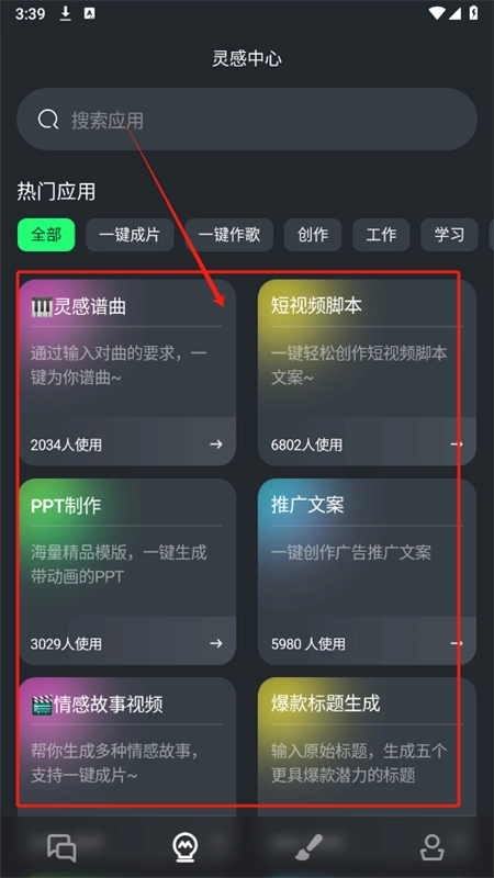 3、在灵感中心可以看到各种热门应用