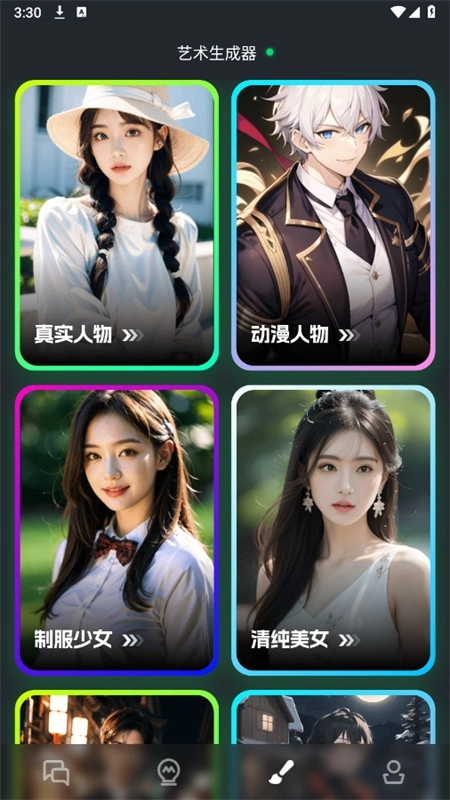 6、在艺术生成器页面,输入描述词即可快速为您生成各种绘画作品