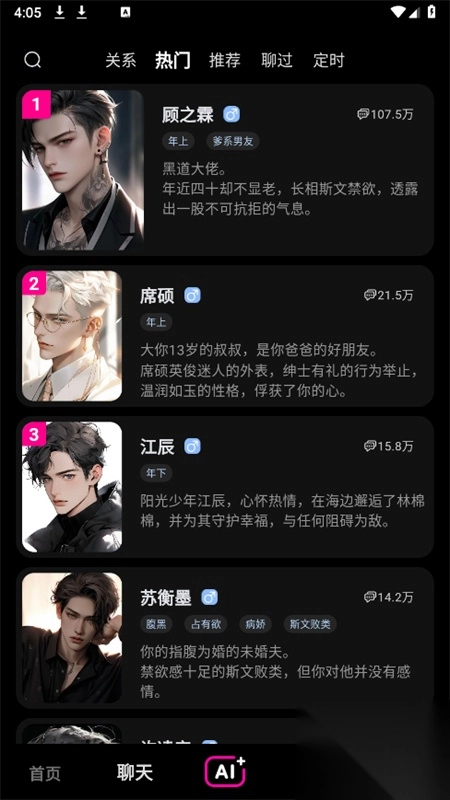 圆你本命之梦:超数万AI原创角色与流行文化人物,视觉精美绝伦,多元互动开启无限幻想天地。