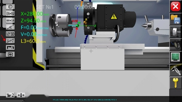 点击左边的红色箭头指向的“X.Z”,你会发现左边显示了X、Z、F、V、L3这几个参数的数值和计量单位,以及模拟器上的线条。