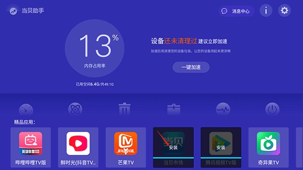 当贝助手 TV 版,是一款专门为智能电视量身打造的管理助手类应用程序。其核心目的在于简化智能电视的管理流程,提升网络速度,清理掉冗余的缓存数据,同时守护电视系统的安全。