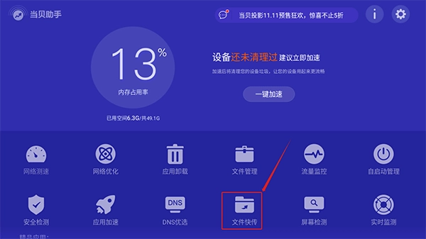 1、在当贝助手中打开文件快传功能