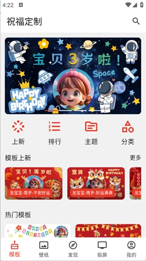 祝福定制,一款功能完备的软件,专为用户精心打造各类个性化祝福图片。无论是生日、新年,亦或是乔迁之喜等各种场合,它皆能从容应对。软件内所有工具均免费使用,用户可随心所欲挑选心仪模板进行创作。更为贴心的是,软件还提供海量免费祝福壁纸供用户使用。不仅如此,它还支持将制作完成的祝福图片投屏至其他设备,便于用户在不同场景中展示。与此同时,软件具备强大的搜索功能,助力用户迅速找到自己喜爱的模板。