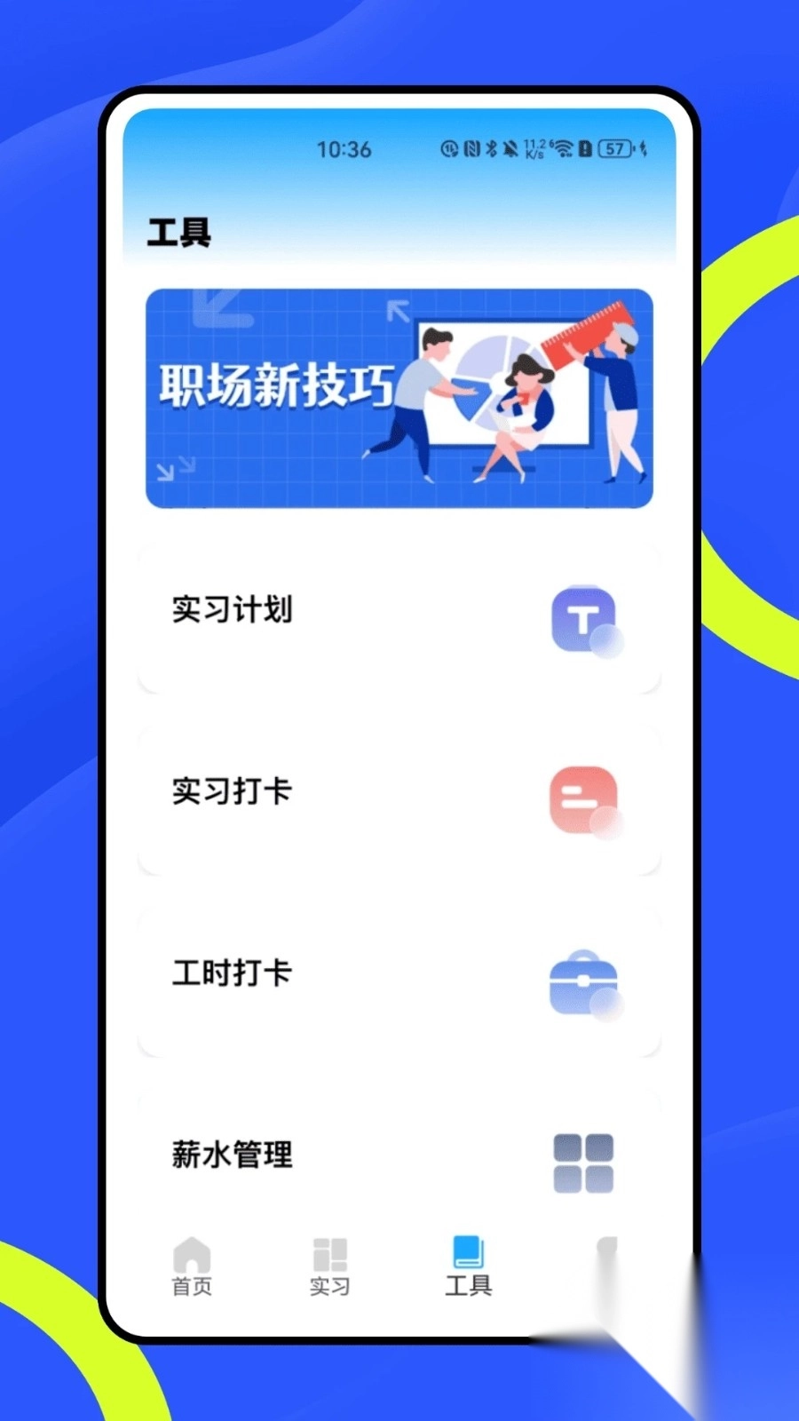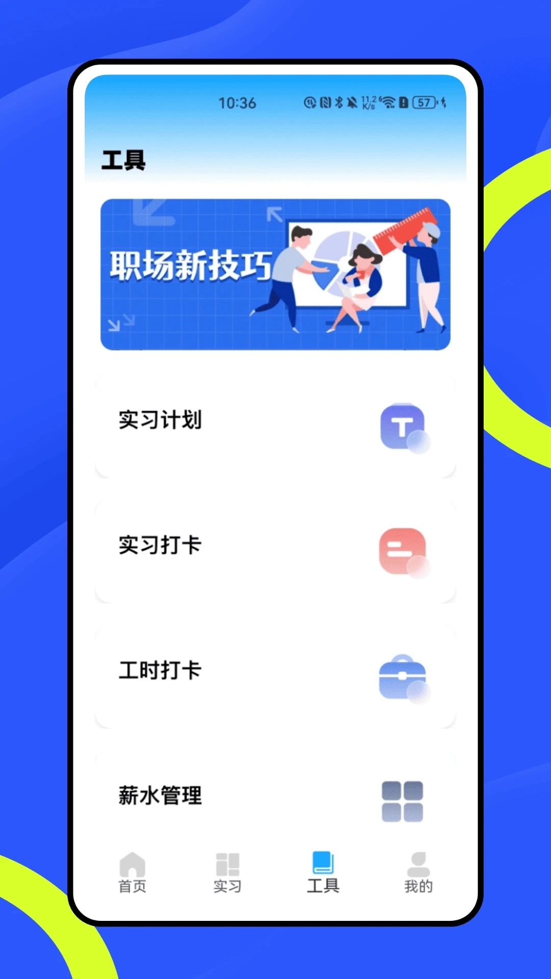 实习知是一款专为实习生打造的效率助手,集求职工具与成长管理于一体。首页提供智能简历制作与证件照生成,助力快速完善求职资料;实习页面汇聚真实就业分享,帮你避坑选岗;工具页面涵盖实习计划制定、每日打卡、工时记录及薪水管理,实现职场成长全流程数字化管理。一键规划、记录、复盘,让实习更高效,职场进阶更轻松!