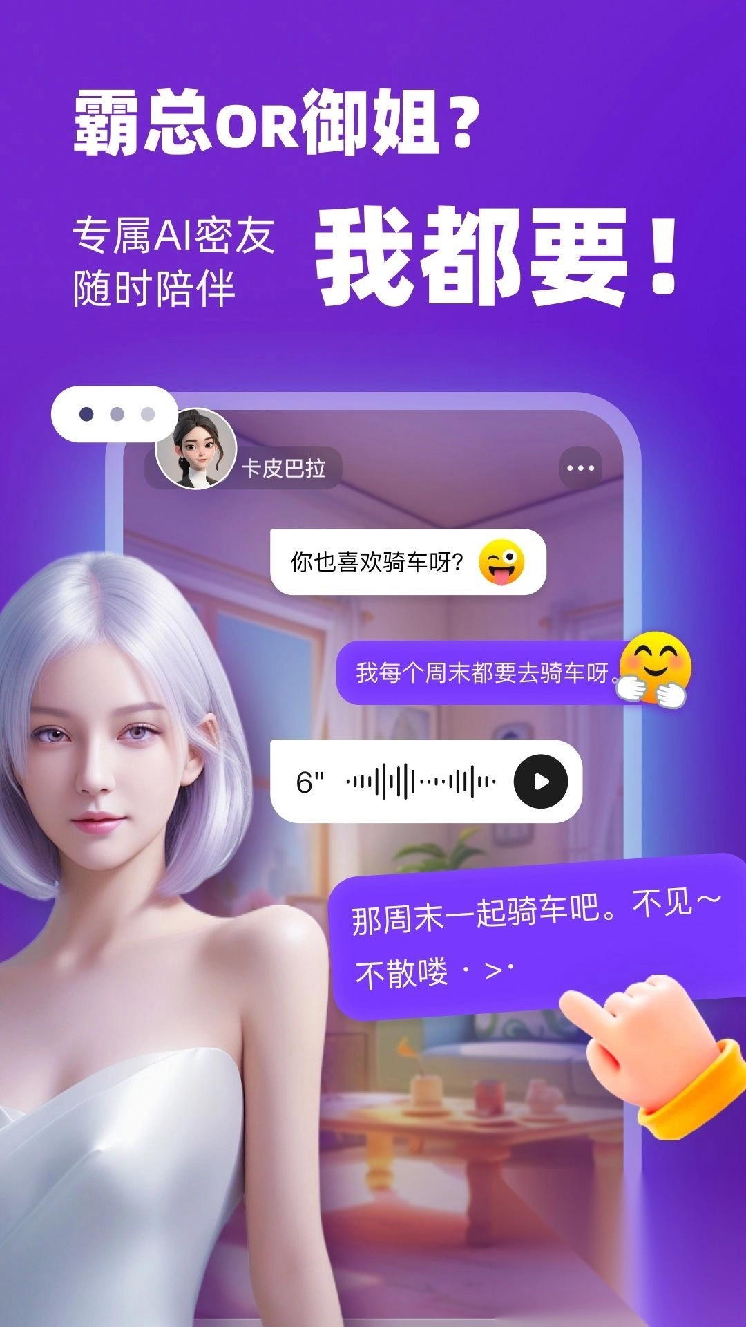 2、提供24小时全天候在线陪伴,与你畅快聊天,告别寂寞与枯燥,聊天过程充满真人情感。