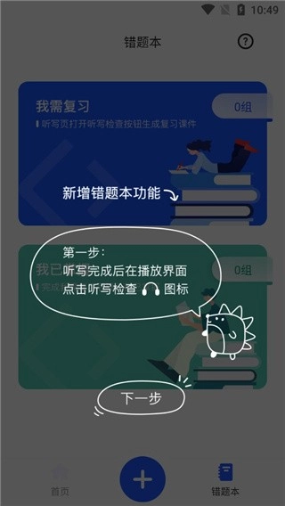 6、回到软件首页,接着进入错题本板块,这是新增的功能。用户在完成听写后,可在播放界面查看耳机图标。