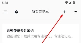 1. 开启专注笔记APP,轻点右上角的“+”来添加笔记。