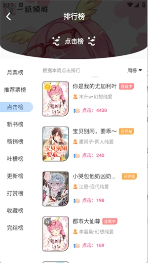 4、在排行页面中根据当前热度将小说进行了排序