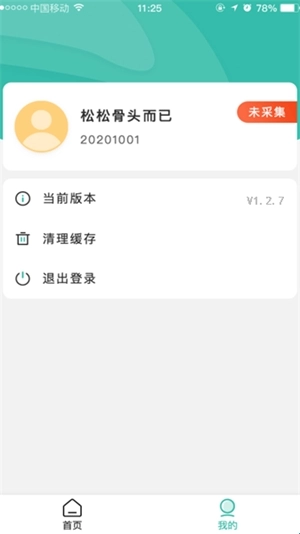 步骤一:点弹框“人脸采集”或点“我的”-“人脸采集”中进入到采集界面;