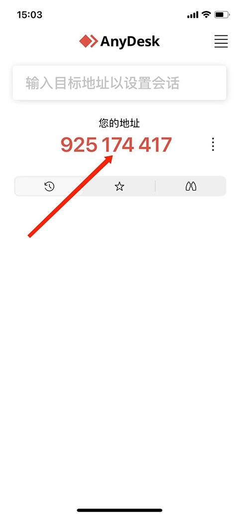 2、于“输入目标地址以设置会话”这一栏目中,把另一部设备的ID地址输入,接着选择“箭头”图标。